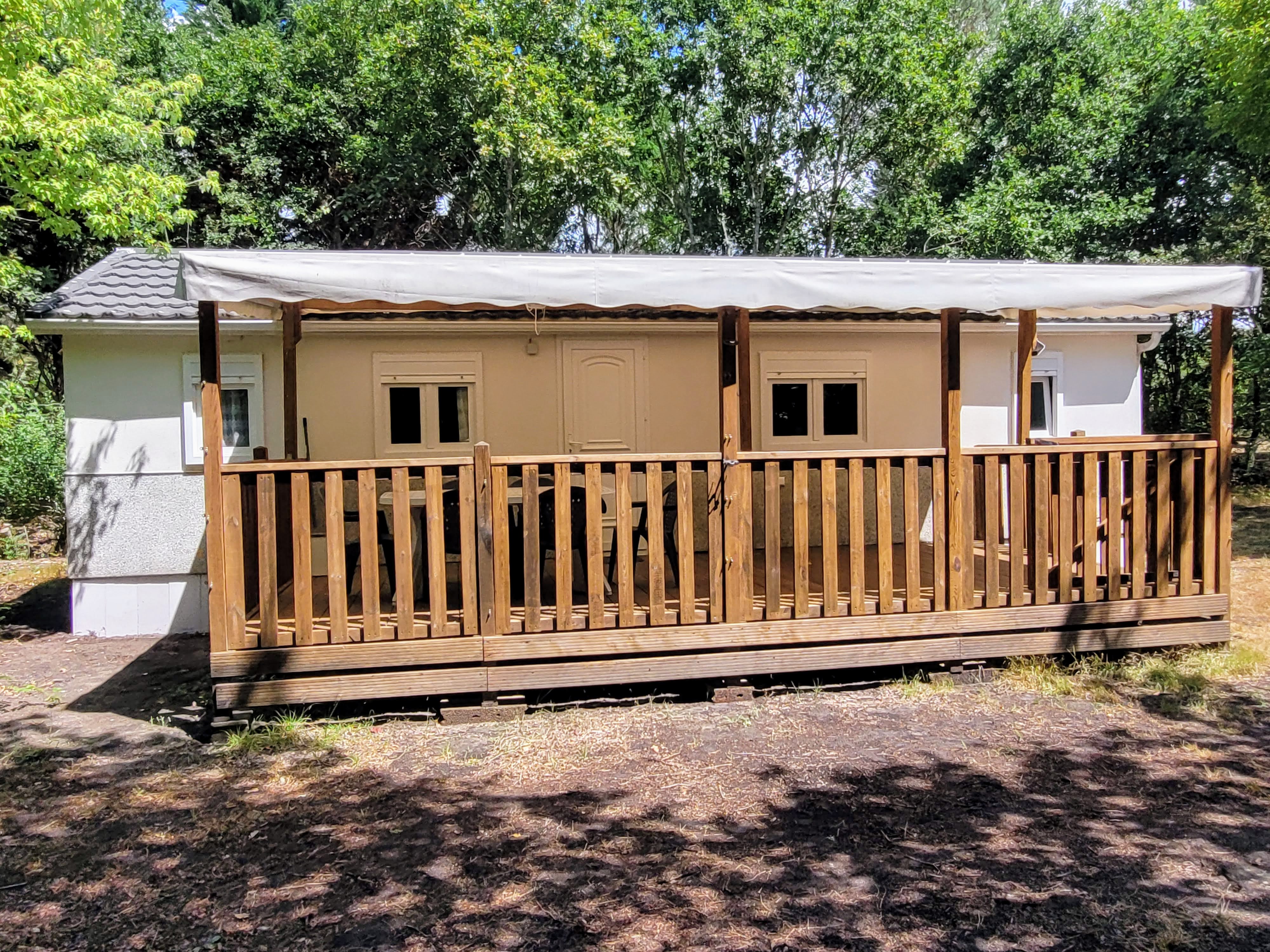 Descriptif :30 m². 2 chambres. 1 lit 2 personnes(140X190). 2 lits 1 personne (70X190). 1 canapé lit. 1 salle d'eau. 1 WC séparé. Coin cuisine. Séjour. Micro ondes. 1 grande terrasse bois . Jardin privatif. Salon de jardin. Barbecue.